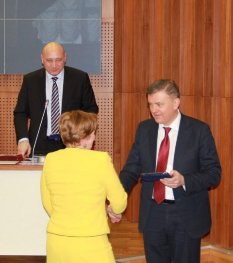 По окончании приветственных речей президент палаты Сергей Хрущелёв торжественно вручил нотариусам грамоты и благодарности нотариальной палаты ЯНАО, губернатора ЯНАО и законодательного собрания округа, а президент ФНП Константин Корсик — медали и грамоты Федеральной нотариальной палаты. Среди 42 нотариусов округа было немало награжденных. Губернатор округа передал нотариальной палате ЯНАО чудесный подарок — 20 золотых монет с изображением царей и цариц Руси и Российской империи.