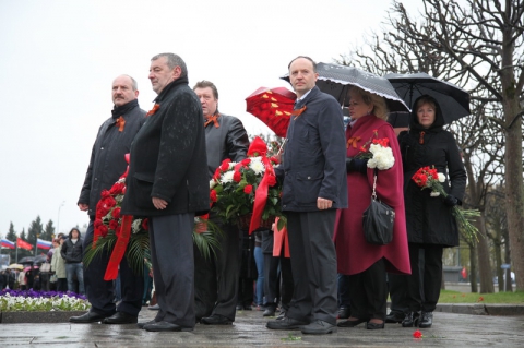 Нотариусы Санкт-Петербурга приняли участие в торжественно-траурной церемонии возложения венков к монументу «Мать-Родина» на Пискаревском кладбище 8 мая.