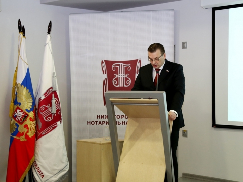 Затем слово взял президент Нижегородской нотариальной палаты Кирилл Лазорин. В своем выступлении он подвел итоги работы нотариальной палаты в 2012 году: