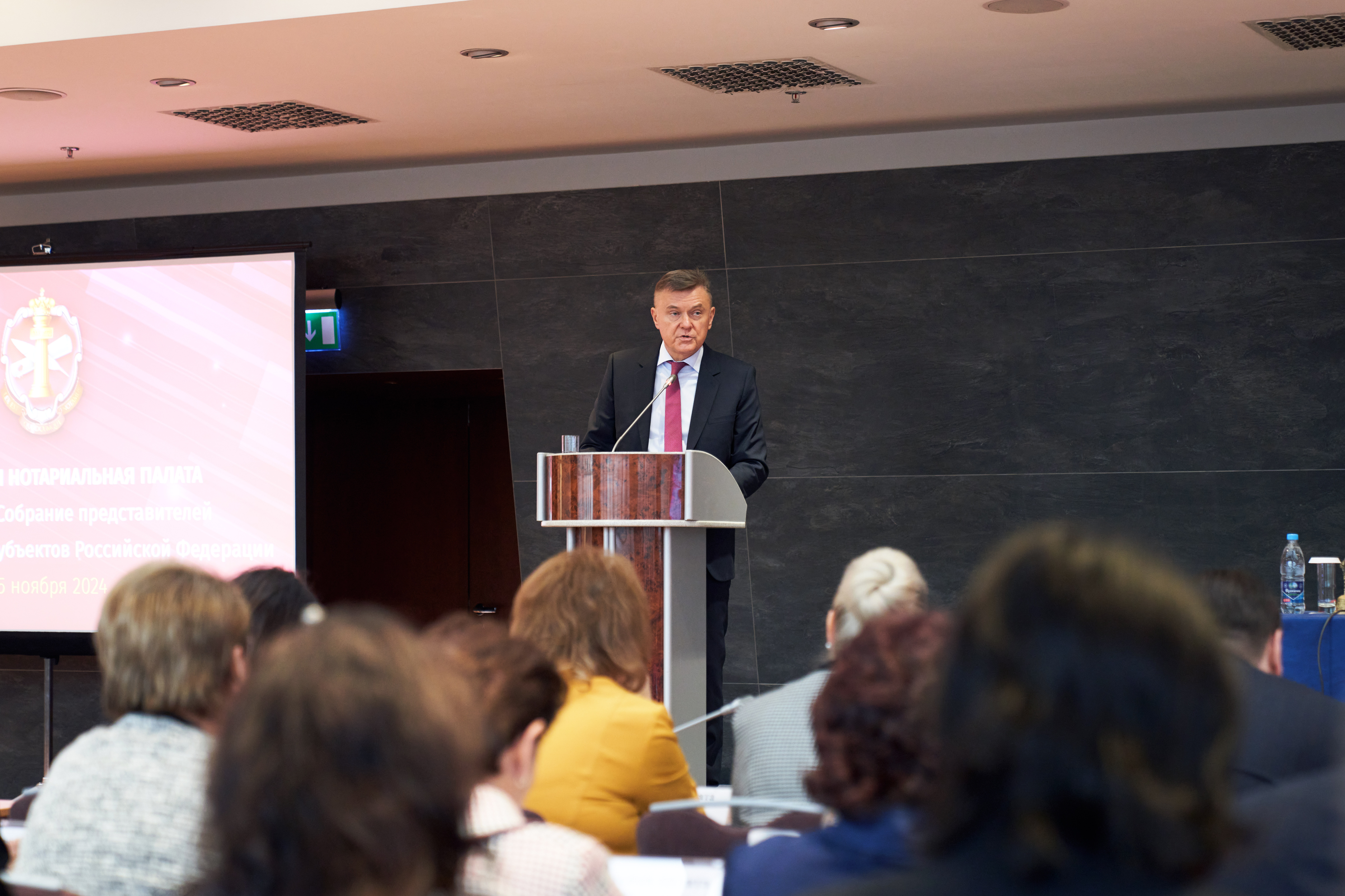В 2024 году важным направлением работы нотариата вновь стала активная поддержка участников СВО, членов их семей, а также вынужденных переселенцев. «Я благодарен всему нотариальному сообществу, вы действительно оказываете большую помощь», — подчеркнул в своем выступлении заместитель министра юстиции РФ Максим Бесхмельницын. Представитель ведомства отметил высокую квалификацию нотариусов, а также доверие граждан институту нотариата.